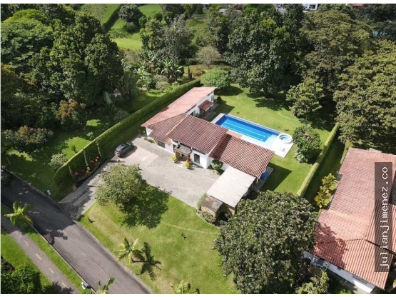 Hermosa casa campestre en conjunto cerrado para la venta ubicada en la via Armenia aeropuerto, casa en solo nivel consta de; sala comedor, cocina integral con isla, 3 alcobas la principal con vestier y terraza, 3 baños, habitacion del servicio con baño, zona de ropas, terraza, piscina, jardines y zonas verdes. El conjunto cuenta en sus zonas sociales con; senderos, bosque, cancha, ciclo ruta, zonas verdes, porteria y vigilancia las 24 horas